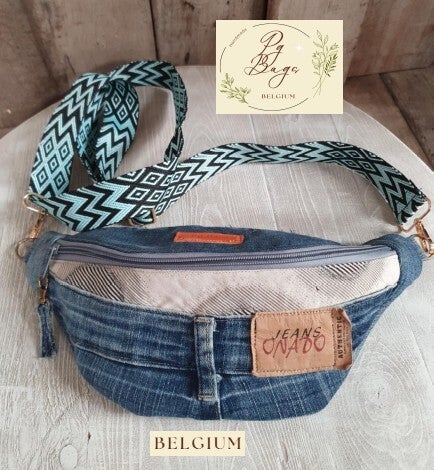 Stoer, stijlvol én uniek: deze crossbody/heuptas is met de hand gemaakt uit gerecycleerde jeans.
