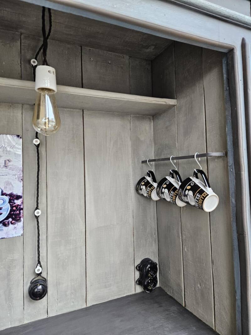 Klaar om te gebruiken als koffiehoek (plaats voor koffiezet, potten, bekers, accessoires)